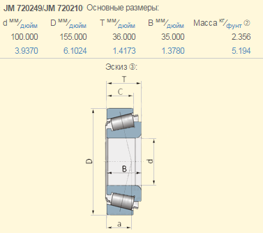Подшипник John Deree JD9092 / JD9147 (JM720249/JM720210)​