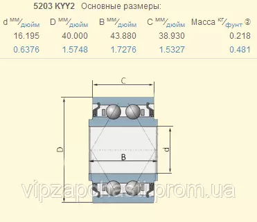 854003 подшипник Massey Ferguson 5203KYY2​ (аналоги: GA6171, 5203VVAN, AN212132)