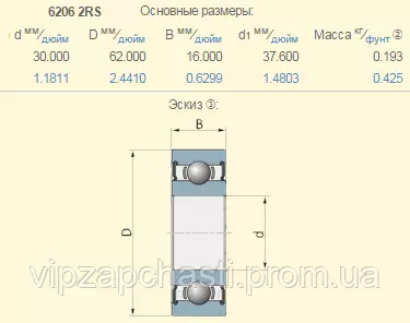 Подшипник к сеялке Monosem 6206-2RS 10161000 (4407) KINEX (Словаччина)