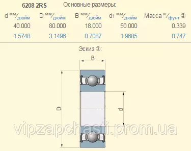 Подшипник к сеялке Monosem 6208-2RS 10161057 KINEX (Словаччина)