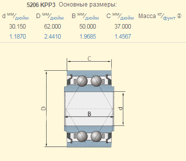 Подшипник Kinze GA8603 GA8641 аналог 5206 KPP3