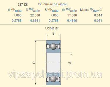 Подшипник Lemken 3198505 аналог 627-ZZ