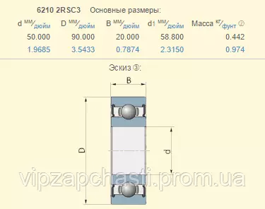Подшипник шариковый Lemken 3198611 аналог 6210-2RSC3 (C3 ― тепловой зазор)