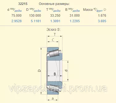 Подшипник роликовый конический Lemken 3199165 аналог 32215