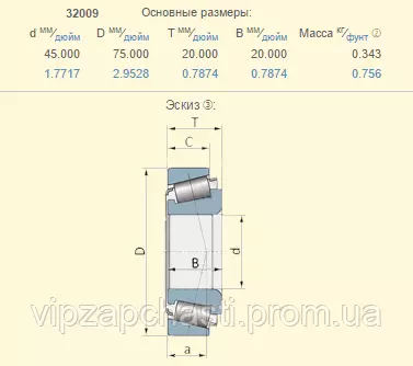 Подшипник роликовый конический Lemken 3199206 аналог 32009