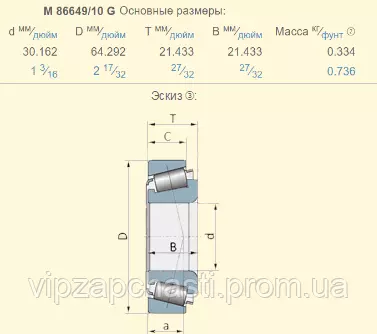 Підшипник M86649/M86610 аналог 86512014 / 400983R91 + 530741R1 / 071982 + 071983 / ( JD8979 + JD8267 / AH65358 / AL161289 / AL71169)