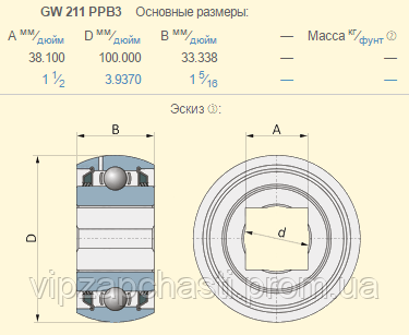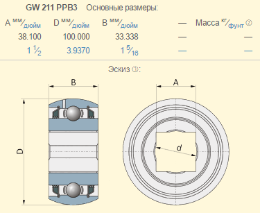 Подшипник с квадратным отверстием Massey Ferguson 449432M1 аналог GW211PPB3​
