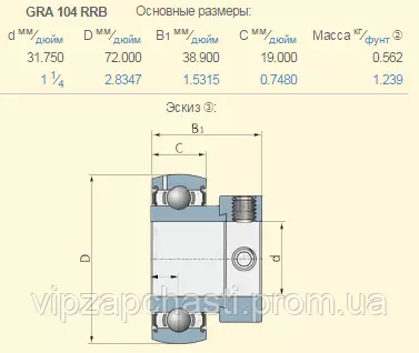 Подшипник Massey Ferguson 833356M1 аналог GRA104NPPB​ YET207-104W, GRA104RRB, FH207-20+R1, GRA104-NPP-B-AS2, ES207-20G2