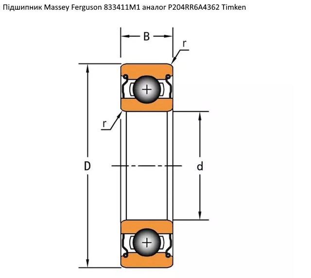 Подшипник Massey Ferguson 833411M1 аналог P204RR6A4362 Timken