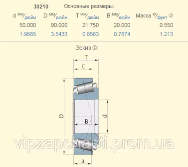 Подшипник New Holland 235989 аналог 30210 SKF-UA