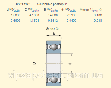 Подшипник шариковый New Holland 29941 аналог 6303-2RS​, 87306803, 727874, 239434