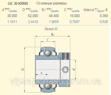 Подшипник шариковый New Holland 325110 аналог GE30KRRB