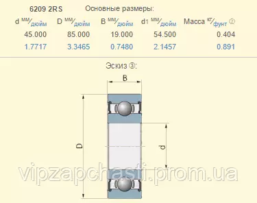Подшипник шариковый New Holland 353125 аналог 6209-2RS