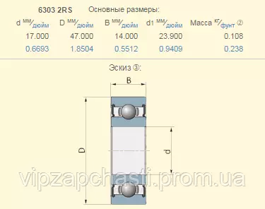Подшипник шариковый New Holland 727874 аналог 6303-2RS