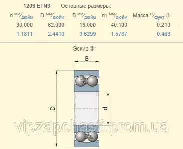 Подшипник New Holland 80210033 аналог 1206ETN9
