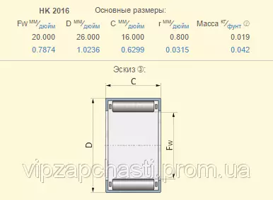 Подшипник роликовый игольчатый New Holland 822987 аналог HK2016