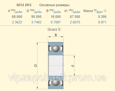 Подшипник шариковый New Holland 84014409 аналог 6012-2RS 122013A1, 134900A1, 165492C91, 165492C92, 165493C91, 165493C92, 175244C91, 175245C91, 24905160, 5145119, 616795, 633704R91, 80616795, 84014409, 84124977, 84124995, 89505859, 920095077, 9505859, JD8517, YZ91404