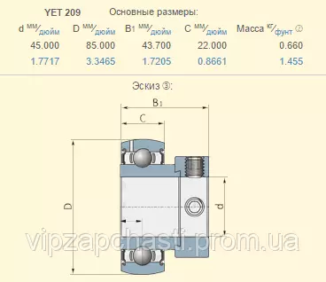 Подшипник New Holland 84019574 аналог YET209