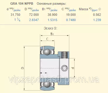 Подшипник шариковый New Holland 84330045 аналог GRA104NPPB, YET207-104W, GRA104RRB, FH207-20+R1, GRA104-NPP-B-AS2, ES207-20G2