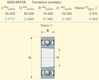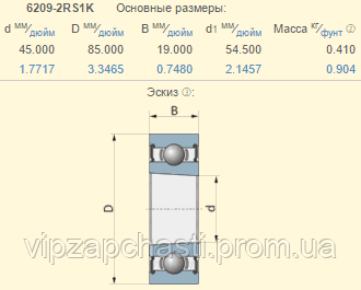Подшипник шариковый с коницеским отверстием New Holland 84434854 аналог 6209-2RS1K