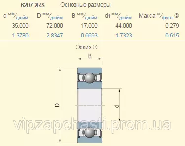 Подшипник New Holland 84438926 аналог 6207-2RS FAG