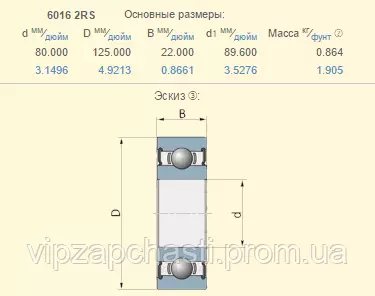 Подшипник шариковый New Holland 84995781 аналог 6016