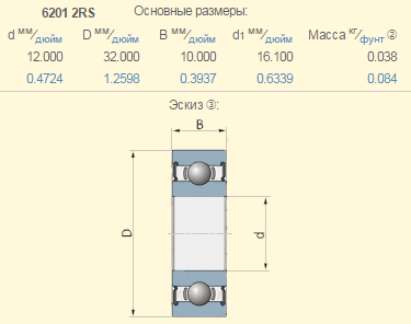 Подшипник шариковый New Holland 89808450 аналог 6201-2RS