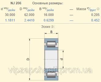Подшипник роликовый New Holland 89814384 аналог NJ206