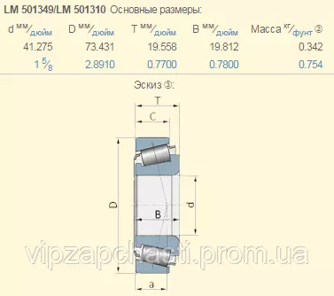 Подшипник роликовый конический New Holland 89833081 аналог LM501349/10