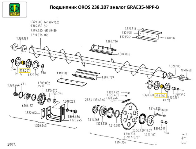 238.207 . . . . . . . подшипник шнека (запчасти OROS-6600)