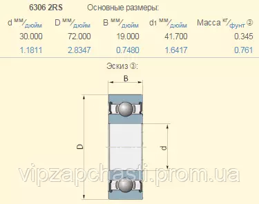 Подшипник на сеялку Prosem-K Quivogne FE-600051 аналог 6306-2RS​ аналог ARO0087 (Moresil)