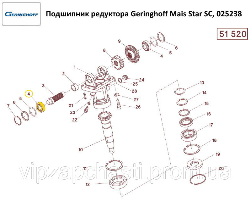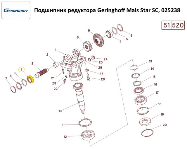 Подшипник редуктора Geringhoff Mais Star SC, 025238