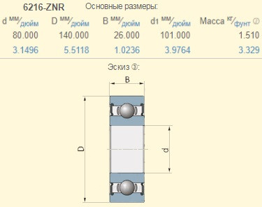 Подшипник редуктора реверса наклонной камеры John Deere, AH213106 аналог 6216 ZNRC3