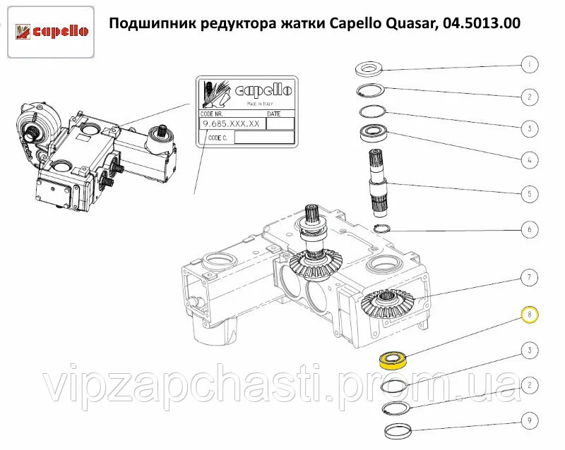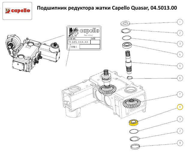 Подшипник редуктора жатки Capello Quasar, 04.5013.00