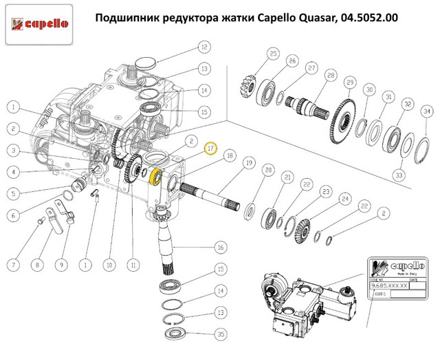 Подшипник редуктора жатки Capello Quasar, 04.5052.00 PEER