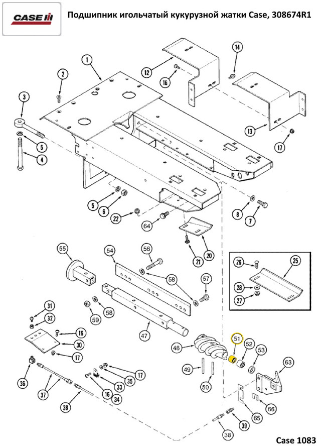 Подшипник игольчатый шнека вальца кукурузной жатки Case, 308674R1