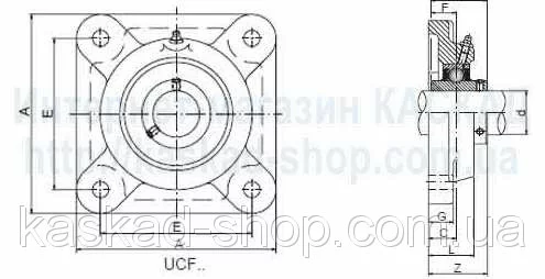 • Корпусный подшипник UCF206 это фланцевый узел который крепится 4-мя шпильками (болтами) М-10, в вертикальной плоскости.