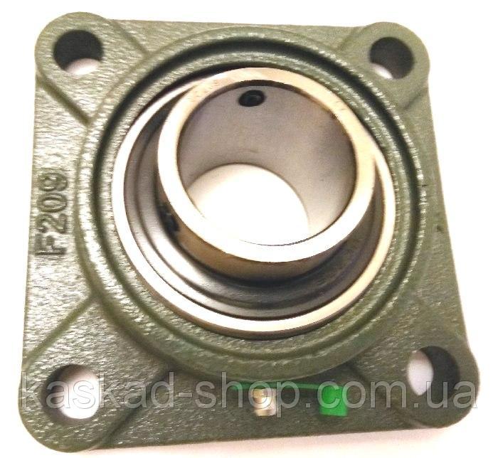 UCF-209 подшипниковый само устанавливающийся узел.  Это фланцевый корпус из чугуна,или стали в который запрессован сферический шариковый подшипник с уплотнительной системой которая защищает от попаданию пыли и грязи.Подшипник прошел заводской контроль качества,имеет сертификат ISO-9001:2008.