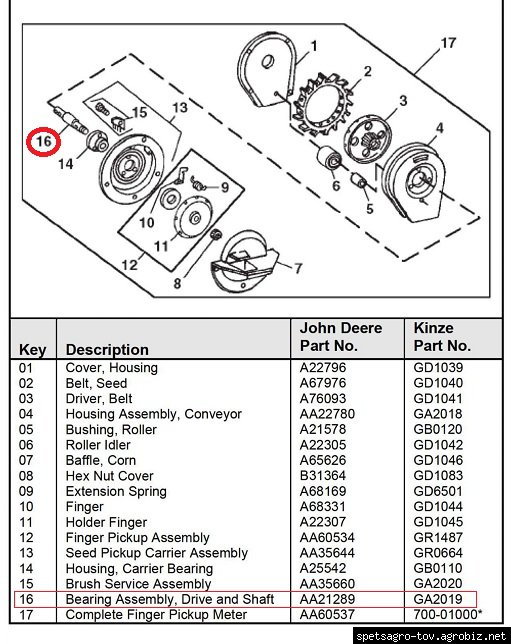 Подшипник высевающего аппарата АА21289, GA2019, IB12444S