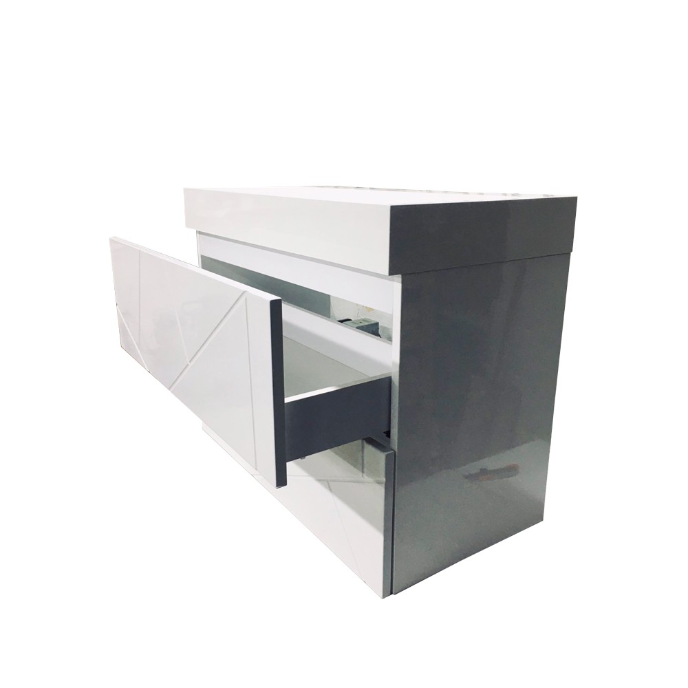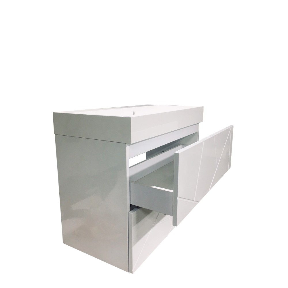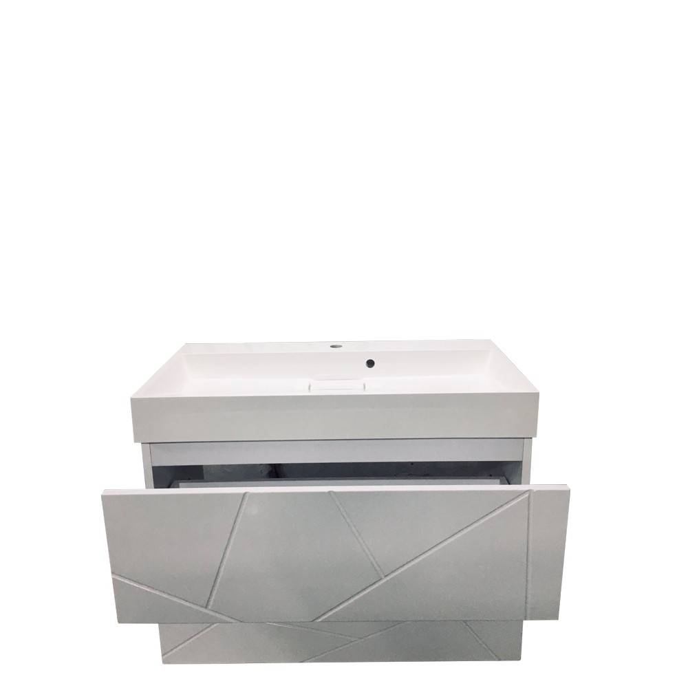 Подвесная тумба The Mix. Корпус сделан с ДСП, а фасад с МДФ. Встроены два выдвижных ящика с системой PUSH. Тумба очень вместительна, выполнена в белом цветеШирина - 90 см.Высота - 70 см.Глубина - 46 см.Тумба идёт в комплекте с раковиной из искусственного камня Ashley 900