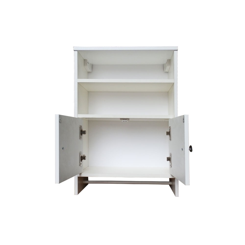 Подвесной шкафчик от отечественного производителя The Mix.Гарнитур для ванной комнаты выполнен из ламинированного ДСП материала. Подвесной шкаф имеет две открытые полки, закрытые полки с двумя распашными дверцами и держатель для полотенец.Ванный гарнитур выполнен в классическом стиле белого цвета. Фасад шкафа сделан из МДФ, который окрашенный влагостойкой,высококачественной эмалью для избежания отслаивания и вздутия краски. За счет этого изделие будет служить вам десятилетиями.Шкаф для ванной комнаты достаточно функциональный, в нем можно разместить все необходимые принадлежности и даже развесить полотенца для сушки. Вы можете заказать подвесной шкаф нужного размера в нашем интернет-магазине «Зе Микс» по приятной цене.