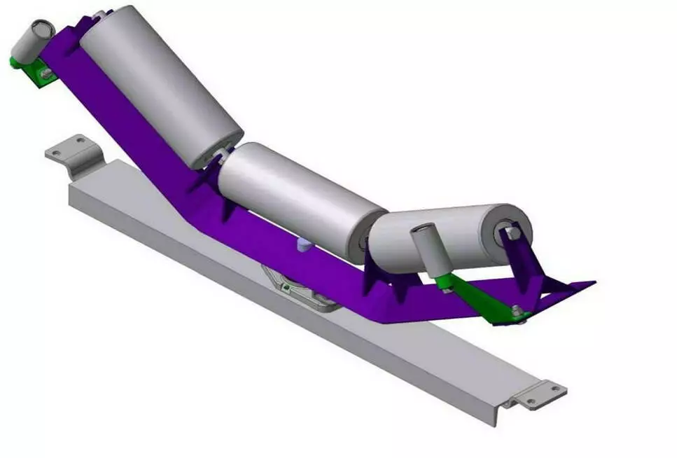 Оптимальное приспособление для регулировки положения и центрирования рабочей ветви конвейера относительно его оси. Включает в себя желобчатую роликоопору, установленную на кронштейне и вращающуюся в горизонтальной плоскости, а также дефлекторные ролики.
