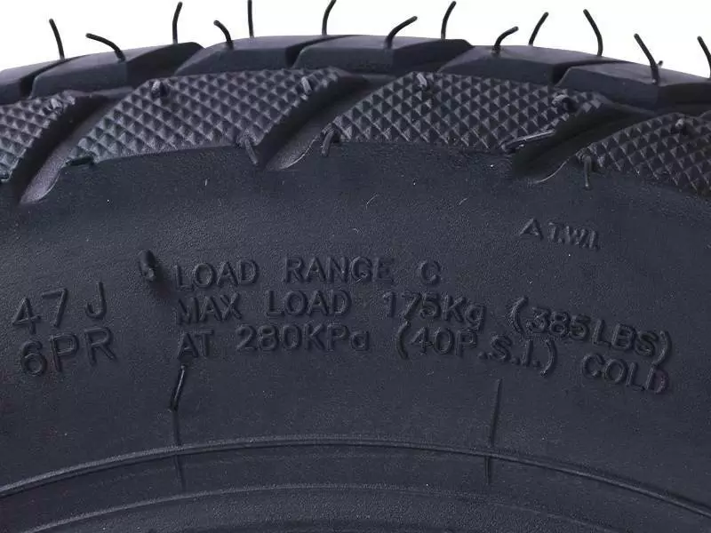 Эта покрышка спроектирована с учетом нагрузочного класса С, что позволяет выдерживать максимальную нагрузку до 175 кг, обеспечивая безопасность и стабильность при движении с пассажирами или грузом. Рекомендуемое давление воздуха AT (атмосферное давление) составляет 280 кПа, что оптимизирует контакт покрышки с дорогой для лучшего сцепления и управляемости.