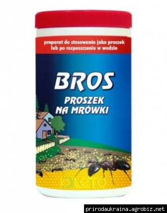 Порошок от муравьев Bros  500г – настоящая приманка для насекомого. Необходимо рассыпать порошок на места перемещения или земляные гнезда муравьев. Насекомые сами бегут к Бросу. Попадая в тельце муравья, Брос начинает свою работу, отравляю организм паразита и парализуя его. Такая приманка – проста и уникальна, так как ее не нужно ни с чем смешивать, можно просто рассыпать ее в необходимые места.