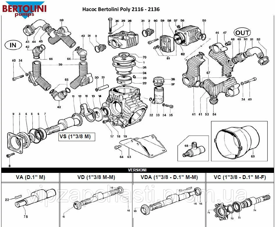 Поршень D-72 мм насоса Bertolini Poly 2116, 63 0013 09 2