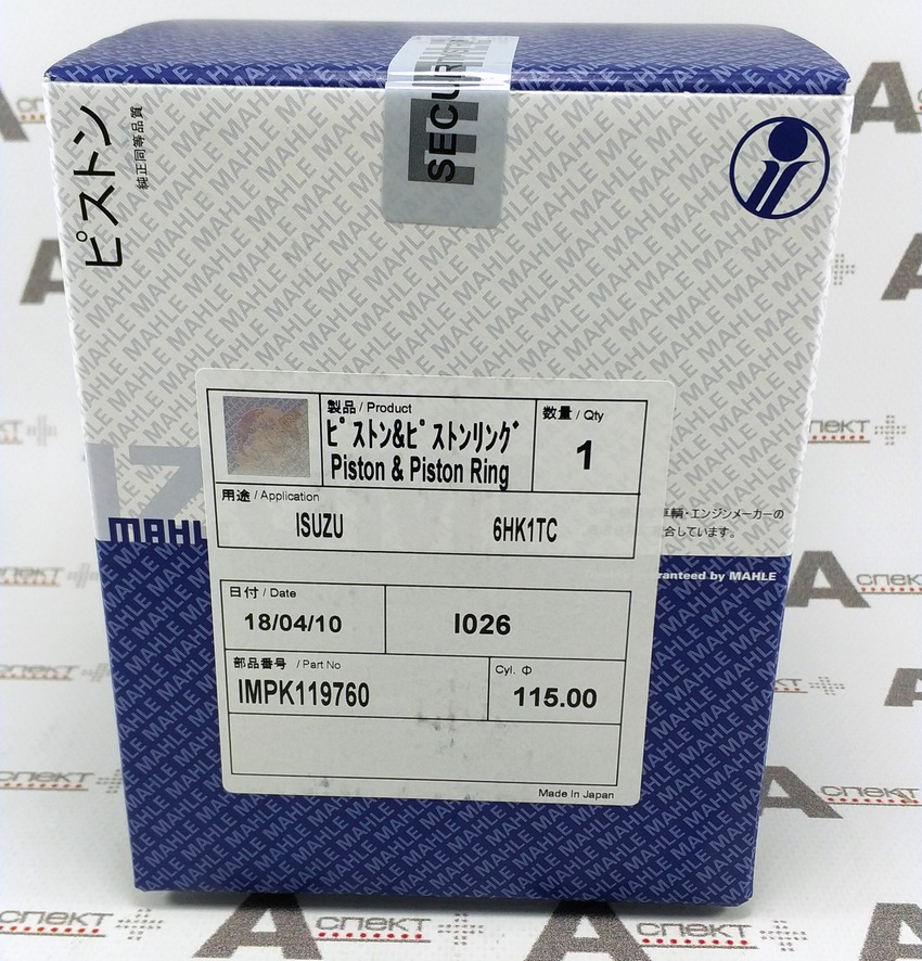 Запасна частина Isuzu: поршневий набір STD (поршень, кільця, палець, стопори) Isuzu 6HK1 1121119760 02/801165 IZUMI IMPK119760
