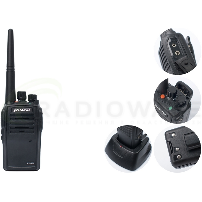 Портативная любительская радиостанция Puxing PX-558 — профессиональное устройство для установки бесперебойной и четкой связи между пользователями. Востребована сотрудниками полицейских, пожарных служб, структурами, обеспечивающими безопасность людей, отвечающих за охрану объекта, военными подразделениями.