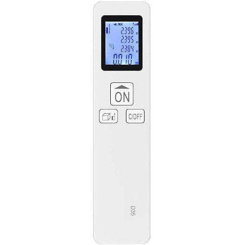 Управление лазерной рулетки D35 интуитивно понятное и осуществляется при помощи трех клавиш на передней панели. Одна кнопка отвечает за включение прибора и запуск измерений. Вторая – переключение режимов и настройка единиц измерения. Третья – кнопка сброса и отключения.