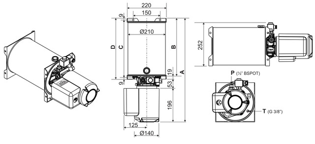 Есть 2 вариантa гидравлического насоса с электроприводом 12V, 2.0KW, 3,1cc с объемом бака 10л и 15л: