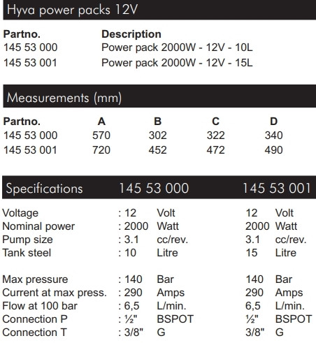 Поверпек 12V-2,0KW 3,1СМ³ (Электрогидравлика / PowerPack) Hyva 14553001